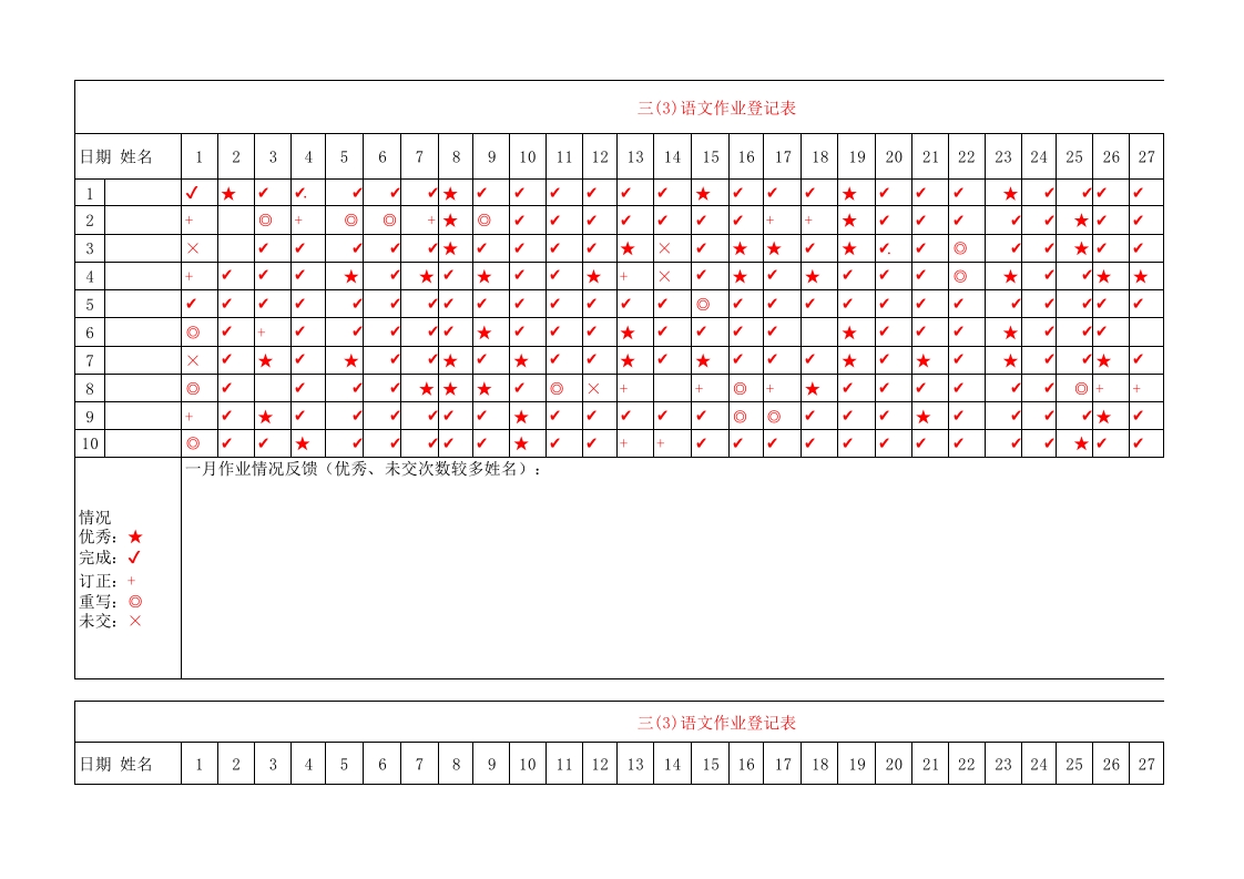 首页班主任库作业记录表五评