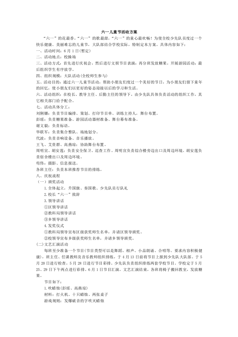六一儿童节活动方案