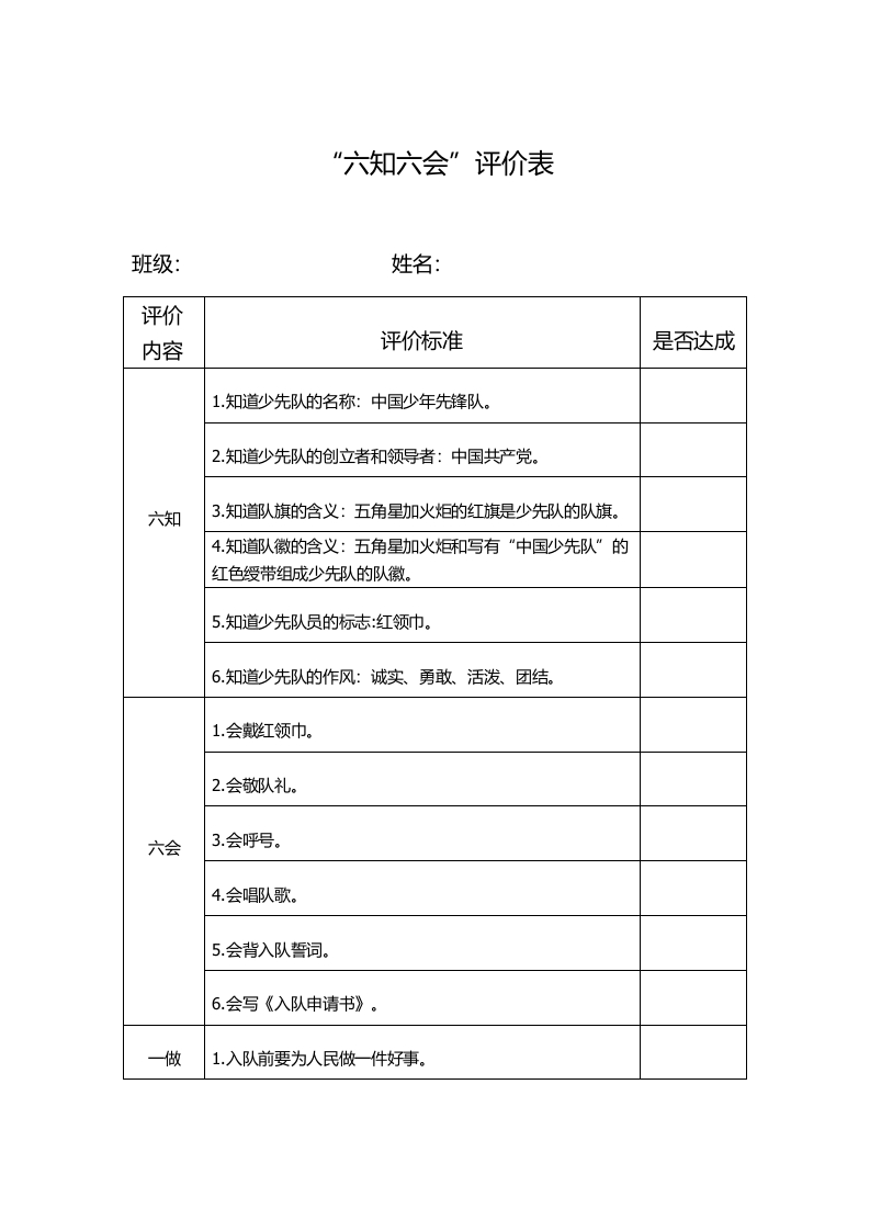 六知六会评价表
