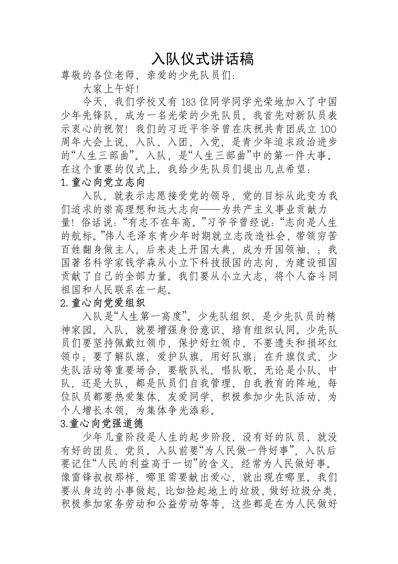 首页教师资料入队仪式讲话稿——校长