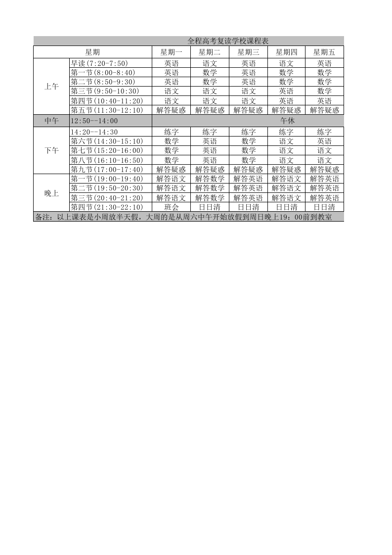 初中高中课程表 (2)