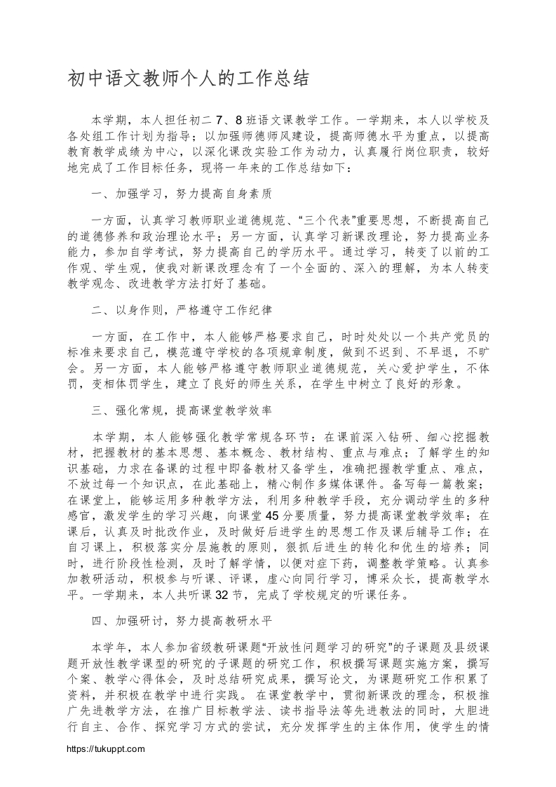 初中语文教师个人的工作总结