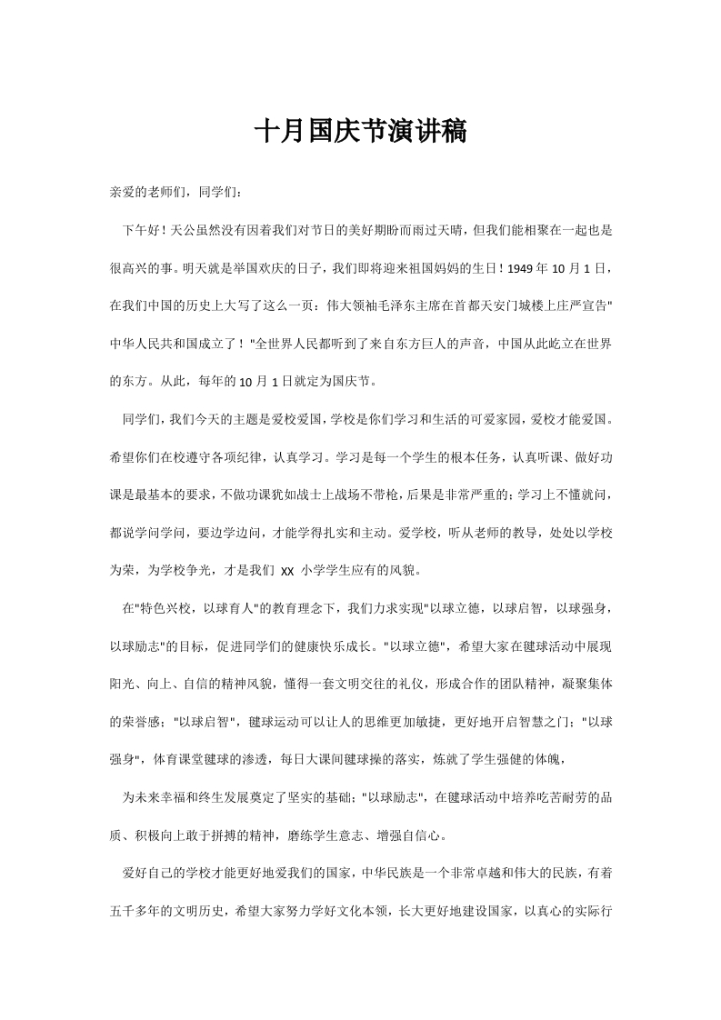 十月国庆演讲稿第1篇