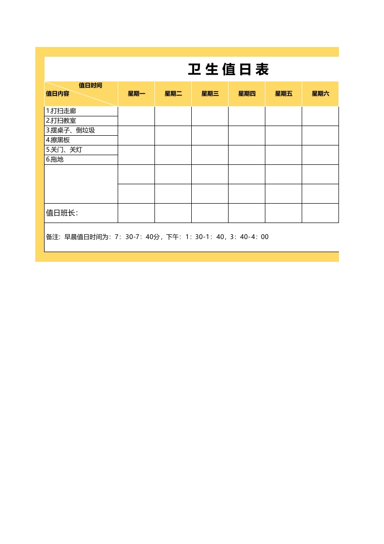 卫生值日表2