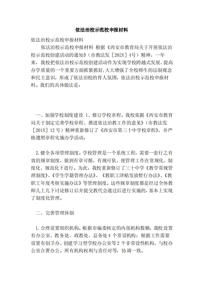 依法治校示范校申报材料(完整版)(范本)(共6页)